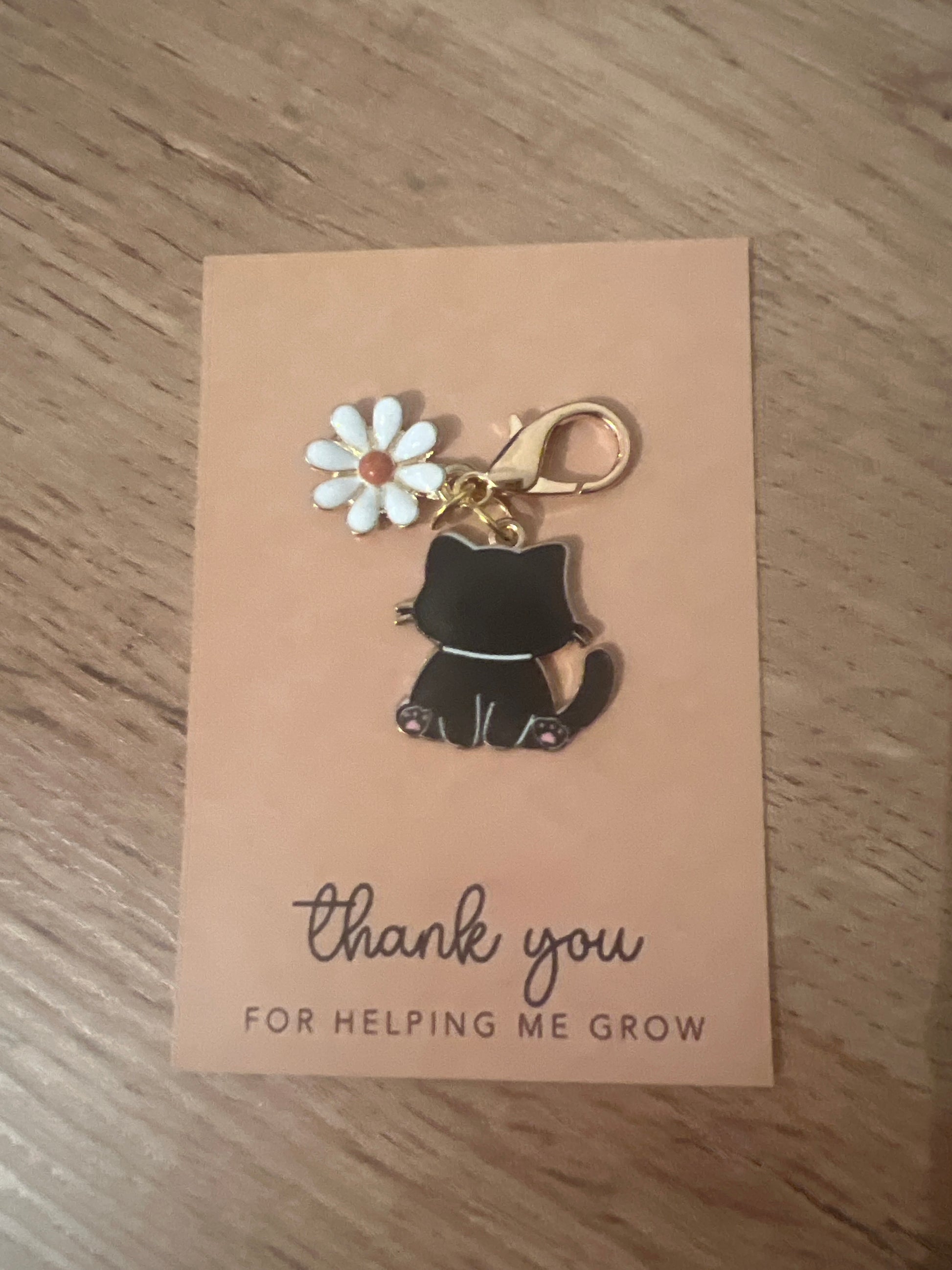Craquez pour ce charmant porte-clés chat accompagné d’une petite marguerite 🌸 ! À la fois mignon et élégant, il apporte une touche de douceur à vos clés, sacs ou trousses. Chaque modèle dévoile un adorable petit chat au style unique.