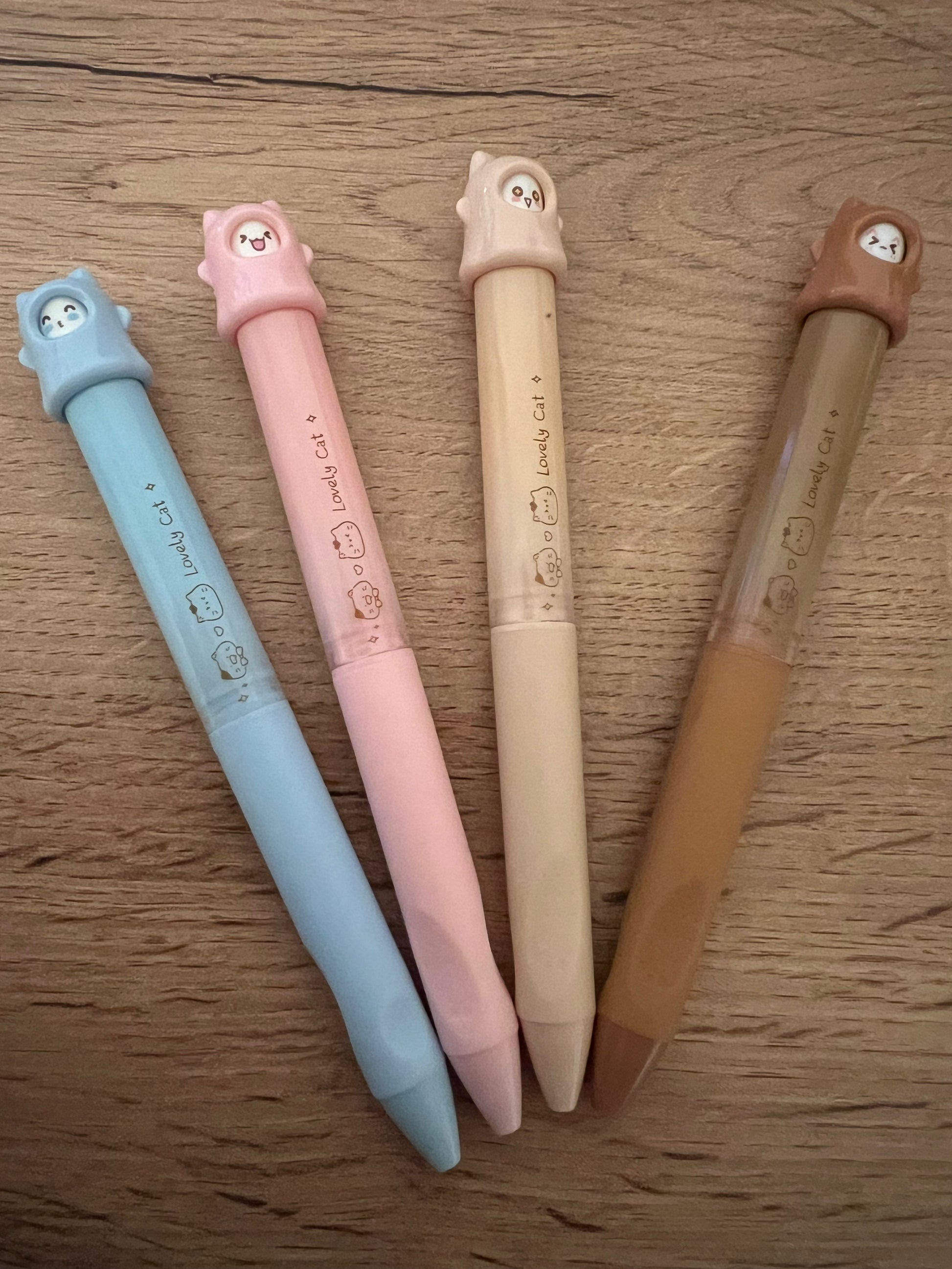 Impossible de ne pas craquer pour ces adorables stylos “Lovely Cat” ! Leur design pastel et leur petit chat espiègle apportent une touche de bonne humeur à chaque mot. Le plus mignon ? 😻 Quand on tourne le stylo pour ouvrir ou fermer la mine, la tête du chat change d’expression !